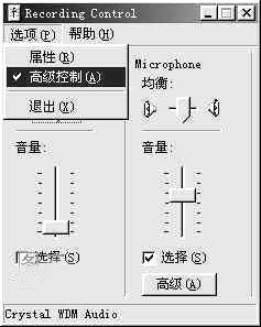 2.在电脑中选择“开始→设置→控制面板→多媒体”,在“多媒体属性”对话框中单击“音频标签”中图1所示的图标按钮,在“Recording Control”窗体“microphone”栏中勾选“选择”复选框(如果找不到“microphone”项,你可以到“选项→属性”中进行操作)。然后选择“选项→高级选项”,这样在窗体右下方就多了一个“高级”按钮(图2),单击它,便出现microphone的“高级控制”对话框。最后选中对话框中“其他控制”栏中的第一个复选框“microphone boost”(图3)。朝着麦克风说几句话,从音箱里传出你响亮的声音了吧。