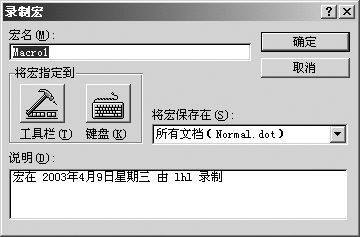 2.单击“工具”菜单→“宏” →“录制新宏”,弹出“录制宏”对话框,如图1;