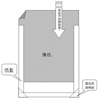 首先要找一张比要打印的报表大的打印纸,通常报表都是16开的纸,所以我选择了A4的打印纸制作。按图1所示剪切折叠制作成一个U形的纸套。纸套的高度和宽度均应比要打印的薄纸报表略大2mm~3mm,这样插入的薄纸才会平整。制作完成后,把折过的这一面向下放进打印机中,打印一张空白文件,这一步是为了利用打印机的滚压让纸套平整定型。如果折的时候没压平整,定型后可能会有一点变样,不过这只是难看一点并不影响使用。接着只需把要打印的薄纸报表按图2所示塞入做好的纸套中,然后把整个纸套当做一张纸放进打印机去打印就行了,我们要打印的是薄纸这一面,放的时候可不要弄错了。打印后这个纸套要保存好,以后还可以重复使用。