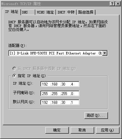 EnterIPaddress192.168.30.1 按前面规划用首地址作网关