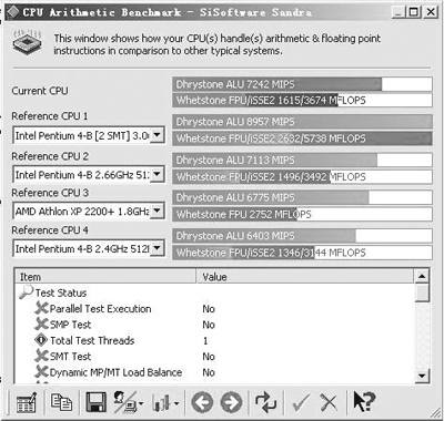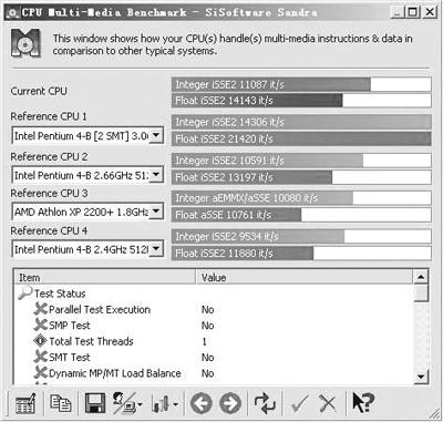 在测试中,Dimension 4600电脑表现还比较令人满意,由这里可以看出,DELL品牌电脑的配件质量确实过硬。从拆下来的配件上也可以看到配件做工的精良以及用料的讲究。名牌大厂就是不一样,一分钱,一分货啊。处理器多媒体性能测试结果如图5所示。处理器运算性能测试结果如图6所示。内存带宽测试结果如图7所示。