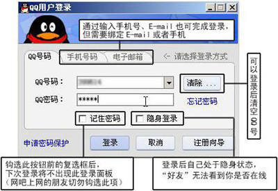 1)安装完成后会自动运行QQ程序。在弹出的“QQ用户登录”对话框中(图3),分别在“QQ号码栏”和“QQ密码”栏填入已申请的信息,然后点击“登录”按钮。