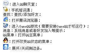 主界面左边是四个切换主面板的图标,从上到下依次是:QQ好友面板、腾讯服务面板、手机好友面板、企业QQ好友面板。另外在主界面下方还有一些功能按钮,具体使用方法如图6所示。
