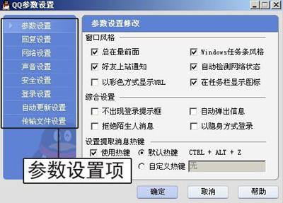 仍然点击“QQ菜单”按钮,在弹出的菜单中选取“系统参数”命令。在弹出的“QQ参数设置”对话框中,可以对QQ进行软件设置(图9)。完成后按下“确定”按钮即可。
