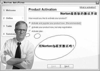 上周,在赛门特克网站上公开提供了Norton AntiVirus 2004 Beta的下载。预计在今年年底就会正式推出的Norton AntiVirus这款新版本,一个最明显的改进便是采用了类似于Windows XP的激活技术。正常安装结束后,它会要求用户通过互联网激活产品,才能保证软件的正常使用。