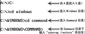 只需按一下回车键,“Scanreg.exe”就会自动将该备份文件中的注册表恢复到系统中,等程序弹出一提示窗口,要求用户重新启动电脑时,按回车键即可,最后重新启动电脑就行了。