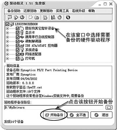在重装系统时,最麻烦的莫过于驱动程序了,特别是对于那些老电脑或安装有特殊硬件设备的电脑而言,如果附带的驱动光盘丢失了,往往很难解决这个问题。此时我们可以用Mydrivers驱动精灵这款免费软件来备份/恢复驱动程序。