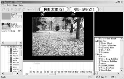 这里需要注意的是,发射点最好不要设置在画面中,而要设在画面以外的上方,这样树叶从画外飘进场景,会产生逼真的效果(图2)。