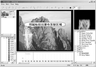 除以上两种特效外你还可以制作很多的粒子特效,如“飞流的瀑布”(图3)。这里我们就不—一介绍了,它的使用也比较简单,赶快去试试吧!