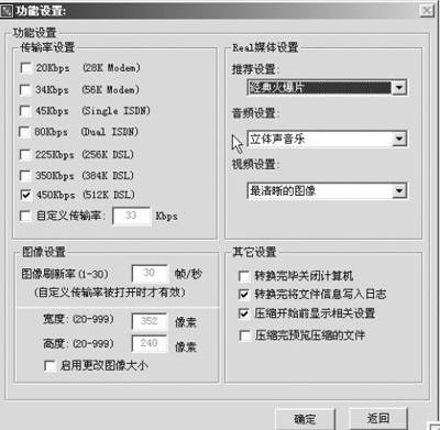 DVD的体积可是超级“肥婆”,RM则是“苗条淑女”。它们之间能互换吗?当然能。《Real格式文件压缩至尊》是RealProducer软件的辅助增强工具,通过它你可将DVD的VOB文件,VCD内的.DAT、.MPG以及其他格式的文件进行压缩!
