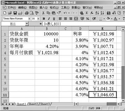日常生活中,人们越来越多同银行的存贷业务打交道,如住房贷款、汽车贷款、教育贷款及个人储蓄等。很多人对于各方面的利息计算往往感到束手无策。本文介绍利用Excel 2002的PMT函数,通过单、双变量的模拟运算来实现贷款的利息计算。通过讲解,相信读者可以很方便地计算分期付款的利息,以及选择分期付款的最优方案。