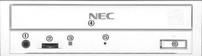 ①耳机孔;②音量控制钮;③指示灯;④托盘;⑤.紧急退片孔;⑥托盘开关键