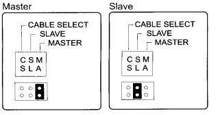 在安装刻录机之前,先要对刻录机的跳线设置进行修改,以保证安装的刻录机能被系统正确识别。根据刻录机背面产品说明的跳线设置说明,调整驱动器的主从位置(Master/Slave,单独使用一个IDE接口的,跳线不用修改),将跳线帽插在相应位置即可(如图3)。