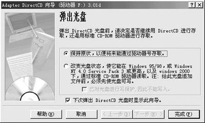 第二项,“改变光盘状态,使它能在Windows95/98或Windows NT 4.0 Service Pack 3或更高,以及Windows 2000下,通过标准CD-ROM光驱读取。”