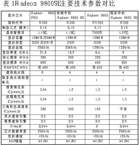 相对于NVIDIA公司宣传上的大张旗鼓,ATi推出新品Radeon 9800 SE的声势就要显得低调得多。不但在产品蓝图上根本看不到该产品的影子,就连互联网上的相关信息都少得可怜。不过数天前,一条有关Radeon 9800 SE的“消息”在网上迅速传开,许多DIYer看后都欢呼雀跃。该“消息”内容如下:ATi面向中国市场推出的Radeon 9800 SE显示卡,采用8层PCB,与Radeon 9800 Pro相同的PCB布局。集成4条像素渲染管线,内核/显存工作频率分别是300MHz和600MHz,显存采用256bit位宽DDR显存,显存带宽19.2GB/s,其他3D技术和Radeon 9800 Pro完全相同,价位向Radeon 9600看齐,在1000元人民币左右。