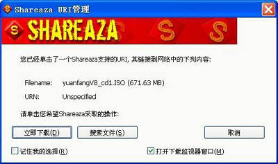 很多P2P下载站点已经将Shareaza指定为BT的官方下载工具。由于BT下载不需要登录到服务器,因此只需要直接点击网页中的下载链接,待*.torrent文件下载结束后,Shareaza会自动弹出图1所示窗口,点击“立即下载”按钮,Shareaza会从网络中查找资源,查找到后就会自动开始下载,下载速度还是相当快的。在下载过程中,下载速度会随着BT种子的增加或减少而发生波动,你丝毫不用奇怪。