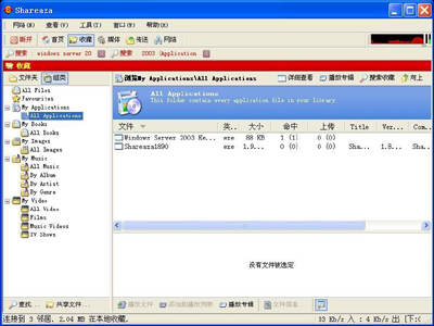 事实上,除了利用P2P技术下载文件外,Shareaza还是一个相当不错的资源管理器。点击工具栏上的“收藏”按钮,如图3所示,我们可以看到软件已经自动创建了My Applications、My Books、My Images、My Music、My Video等不同的类别,所有下载的文件会自动进入相应的类别,一点也不用你操心。
