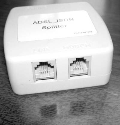 ADSL可以使用在原有的电话线路上,实现通话、上网两不误,秘密就在于使用了语音分离器。语音分离器是一种低通滤波装置,主要功能是将铜线上处于低频段的语音信号过滤出来,传到电话机上,让数据和语音各行其道,互不干扰。大部分ADSL Modem上面都集成了语音分离器,有些则是外置的(图1)。