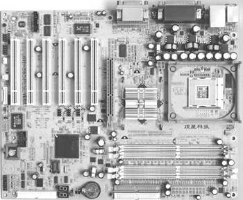 P4P800 Delux物如其名,它继承了华硕高端主板的一贯风格,配置十分豪华。P4P800 Delux的元件、布局看起来显得比较大气,CPU的供电部分也采用了三相回路,而滤波的电容选择了体积比较小的型号,而且每一个的容量只有1500μF(一般为2200μF),不过我们在测试中却没有发现任何不稳定的现象。P4P800 Delux也采用了标准的5PCI+4DIMM的结构,不同组的DIMM用不同的颜色分开。
