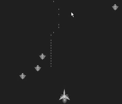 在影片开始播放时,只要按下Shift键,子弹的发射就开始播放,初始的位置是主机的位置,因为子弹的轨道中本身存在着循环的坐标递增,所以,就形成了子弹发射的实例。