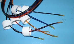 3.接下来把墨水瓶一端的管线按顺序穿入已钻好孔的瓶盖里,长度应与墨水瓶的高度差不多。并用胶固定好接口处。按管线在墨盒这边的顺序分别放入相应颜色的墨水瓶并盖紧(图3)。下一步就是把墨水瓶里的墨水用注射器通过管线抽到墨盒这边来,可按从右到左的顺序进行。抽出墨水你就可以看到黄色的墨水顺着管线抽到注射器里了,这时应把墨水瓶这边的管线折起来用小铁夹夹住。这样墨水就不会回流。把注射器拔出来。把管线插入墨盒相应颜色的孔内用胶封好。等胶干后就可以把小铁夹松开了。这时墨水应有一点点回流,然后就固定不动了。如果墨水一直回流到墨水瓶就说明那里没有封好有漏气现象。主要检查排气孔和注墨孔是否封好。然后依次接好其他颜色的管线。最后用钢丝自制两个卡子将它们固定到喷头座上(没有钢丝也可以用硬纸片卡紧)。至此整个改装过程结束(图4)。