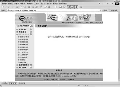首先打开IE,在地址栏中输入http://www.eb.fm,在打开的页面中找到 “获得e名片的第一步,查找你喜欢的e名片网址:”输入你喜欢的域名后,单击“申请”(图1),当你输入的域名还没被别人注册时,就可以继续点击“我要注册”,同意服务协议后,认真填写你的详细资料(这可是今后要显示在你名片上的呀),成功后就进入“e名片”的个性设置界面了(图2)。