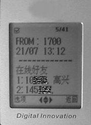发短信“MQ”到移动QQ服务号(移动用户发送到“1700”,联通用户发送到“9777”),稍等便可收到一条短信,其内容如图1所示,但受短信长度限制牞并不一定能一次显示完所有在线好友名字。如果需要查询更多在线好友名单,可再回复“MQ”至服务号,便可收到后面的在线好友名单。