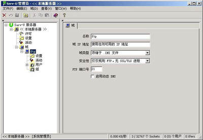 2.在局域网的主机上架设FTP,推荐采用简单易用的Serv-U。要注意的是FTP的端口要和TrueHost设置的FTP端口一致(图2)。