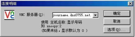 5.运行WinVNC的客户端进行连接,在VNC服务器一栏中填写你申请到的域名(图3)。