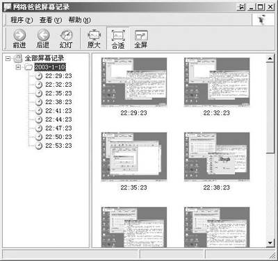 需要查看屏幕记录的时候,只要在开始菜单的“网络爸爸”程序组中单击“查看屏幕记录”即可(图3)。