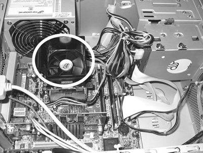 拆开机箱来看,联想锋行A9010电脑的内部显得很紧凑,各部件间的空间没有浪费的现象,主板是简约派的小板。所有这些,都为联想锋行A9010电脑的机箱节省了空间,使得平时笨拙的机箱能大大地减小体积。在机箱内部,最突出的就是CPU的散热风扇了。在风扇散热片的顶部,有几片与众不同的黑色塑料导向片。向机箱中部伸出的导向片,可以有效地将机箱内的冷空气与热空气隔离开来,使CPU可以更好地散热(图2)。因机箱内部空间紧凑,而所采用的数据线并没有减少,所以看起来机箱内的布线显得稍微有点凌乱。