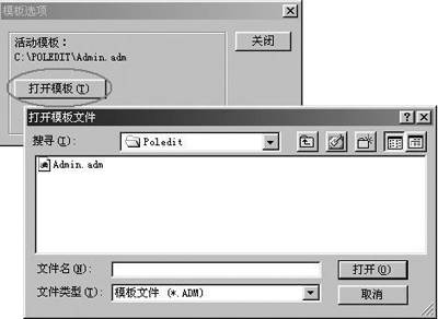然后单击“添加”按钮,在弹出的对话框中选择相应的.adm文件。单击“打开”按钮,则在系统策略编辑器中打开选定的脚本文件,并等待用户执行。