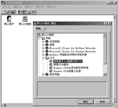 如果一个设置值需要附加信息,那么缺省用户属性对话框的底部将出现一个编辑控制。通常,如果选中了一个策略,而又不想强制使用它,应当清除该复选框来取消该策略。