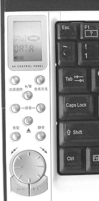 Y800不仅是一台笔记本电脑,还可以取代你的床头音响。在键盘左侧,Y800独立地布置了AV控制按钮,无须再去点屏幕上的软件按钮,前进、倒放只需轻轻地一拨。在关机状态下,按下“音乐开关”,Y800就摇身变为一台CD机。这时可以打开光驱,放进CD光盘进行播放,左上侧的小液晶面板还可以显示播放的曲目和时间。在腕托两边的两个喇叭,播放音乐时声音悠扬、干净。而且我们发现,在关机状态下除了播放音乐CD,Y800还可以播放MP3光盘。让人感到美中不足的是播放时如果合上LCD屏幕,播放就会停止。如果控制按钮和喇叭都在外部,那就更方便了。