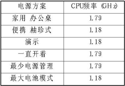 设置不同的电源方案对笔记本电脑的工作能力影响很大,下表列出了在不同电源方案下的CPU运行频率。