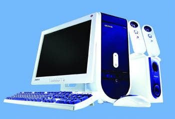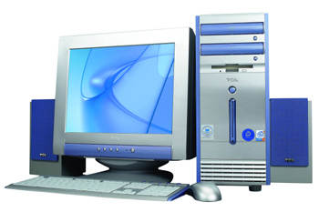 P4-2.4GHz CPU(超线程)/256MB DDR双通道内存/80GB串型ATA(SATA)硬盘(7200转)/GeForce4(64MB)显卡/Intel 865PE+ICH5原装主板/16×DVD光驱/1.44MB软驱/AC97声卡/56Kbps MODEM/100Mbps网卡/光电鼠/新蓝e家人软件/低音炮2.1音箱/17英寸纯平彩显。