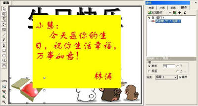 至此这个生日贺卡就做好了,记住要把它导出成SWF文件哟。作品效果可参见http://www.zizi.8u8.com/flash.htm。