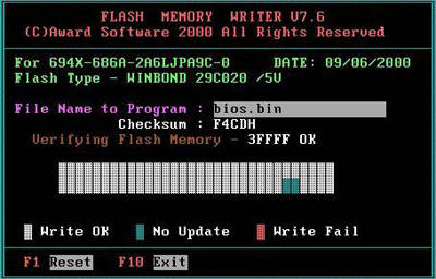 由于AWARD BIOS中有一个固化了的Boot Block块,把BIOS系统中最重要的启动信息保存在其中。因此,有些版本的刷新程序在写入之前会提示你是否覆盖引导块区域(Update BIOS Including Boot Block and ESCD),一般高版本的刷新程序的默认值就是不覆盖Boot Block引导块。因此只要Boot Block引导块没有被破坏,即使BIOS刷新失败,还是能够控制ISA显卡和软驱,但是现在找一块ISA显卡非常难,所以还是利用软驱“盲刷”吧!