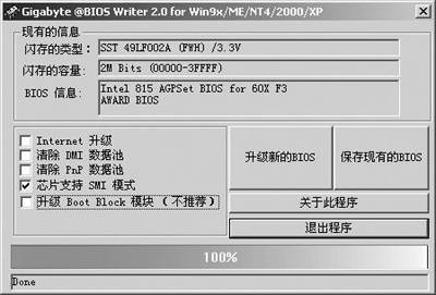 技嘉公司为其用户开发的@BIOS让用户可以在Windows下方便地进行BIOS升级。虽说这个程序是针对技嘉主板的,但是也可以实现对其他主板BIOS的刷新(下载地址为http://file2.mydrivers.com/bios/lufj_@bios_writer_2.0.exe)。