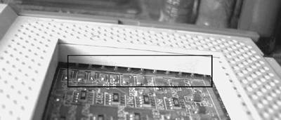 笔者以前曾用过数显温度计(图1),利用温度探头即可探测温度,能不能给主板另外增加一个温度探头,用数显温度计监控CPU的温度呢?对于Socket结构的主板来说,厂商一般是把温度探头安装在CPU插槽内。如果自制,关键是如何将温度探头所连的导线引出。CPU的针脚很密,与插座的间隙也小,从CPU与插座之间过去是不大可能的。再仔细看,发现CPU插座与主板之间似乎有一点空隙(图2),如果能有两根细线,从插座内穿出来,不就可以实现主板测温这一功能吗?