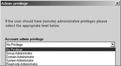 Account admin privilege(账号管理特权):一般使用它的默认值“No privilege”(普通账号),如图3所示。
