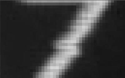 但是,将相机的分辨率设置为640×480再拍摄,并放大8倍,构成图像的方块明显变大了(图2)。