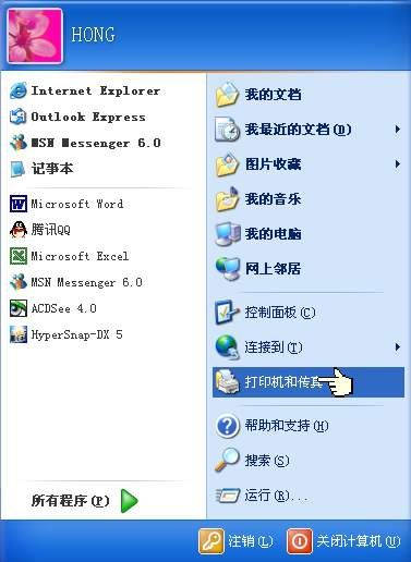 ①打印机安装后,单击“开始菜单→打印机和传真”项。