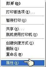 ③在该窗口中我们可以对打印机的属性进行设置,用鼠标右键单击该打印机图标,在弹出的右键菜单中选择“属性”命令。