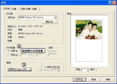 ②在“打印范围”中我们还可以选择图片的打印份数。