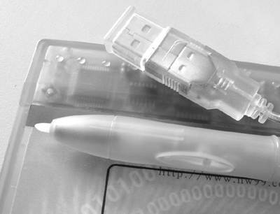 汉王笔中书令是本次评测中惟一一款采用有线笔的手写系统。由于采用了有线设计,所以感应范围相当大,笔在距离板十多厘米处都能够感应到。