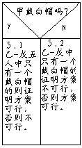 我们首先据甲的帽子颜色判断应该选择<2>中的一种意思进行表达(如图6),这要用到数组Cap(),在甲戴白帽子时,即Cap(1)=False时,应该表达其他四人只有一人戴帽子这种情况才是符合要求的,如果通过,可继续向下判断乙的话,否则,就立时证明该方案是行不通的,我们应立即退出子程序。