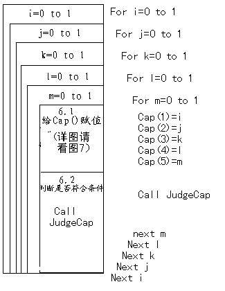 (2)循环整体中通过两个步骤,2.1给Cap(1)~Cap(5)赋值和2.2选择符合条件的方案,淘汰不符合条件的方案,并将符合条件的方案输出。