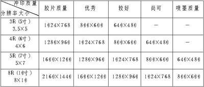 表中列出的各像素所能拍摄的最大分辨率,可见300万像素DC拍出的数码照片,要冲印成常见的6寸并拥有与普通胶卷不相上下的画面质量毫无问题,500万以上像素拍摄的效果完全可以用来制作海报与广告了。