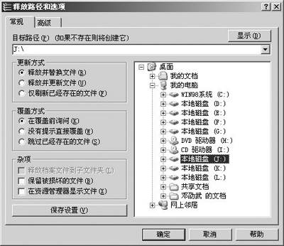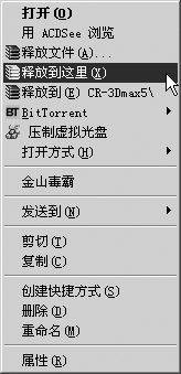 选择一个压缩文件,单击鼠标右键,在弹出的快捷菜单中会有三个和WinRAR相关的选项(图1):如果选择最后一个“释放到这里”,它会在当前位置建立一个新的文件夹,文件夹将以压缩文件的文件名命名,并将文件解压至该文件夹中;如果选择第二个“释放到这里”,将会直接将文件解压至当前位置;选择第一个“释放文件”将会弹出一个“释放路径和选径”对话框(图2),你可在“目标路径”处设置解压文件释放的路径,路径的设置可通过浏览窗口右下方的资源管理器栏来进行。其他的设置通常情况下使用默认的就行了。如果你想在解压时不释放压缩包中的路径名,可选择“高级”选择卡,勾选其中的“不释放路径名”复选框,这样就只释放压缩包中的全部文件,而不会按压缩包的结构释放其中的文件夹。